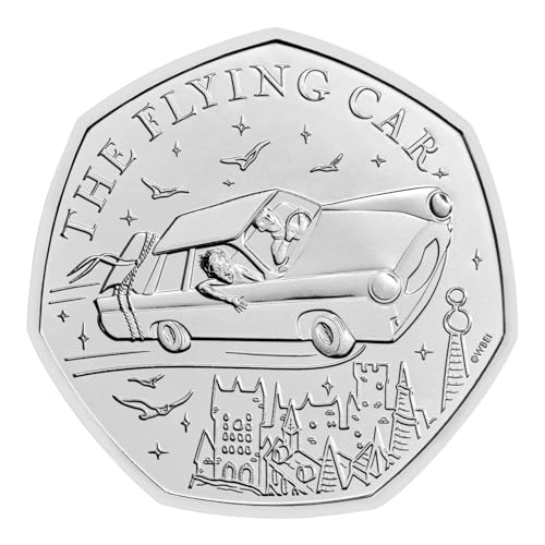 The Royal Mint – Harry Potter Flying Car 2025 Brilliant Uncirculated Official UK 50p Coin, Celebrating an Iconic Storybook Scene in Decorative & Collectible Fold-Out Packaging