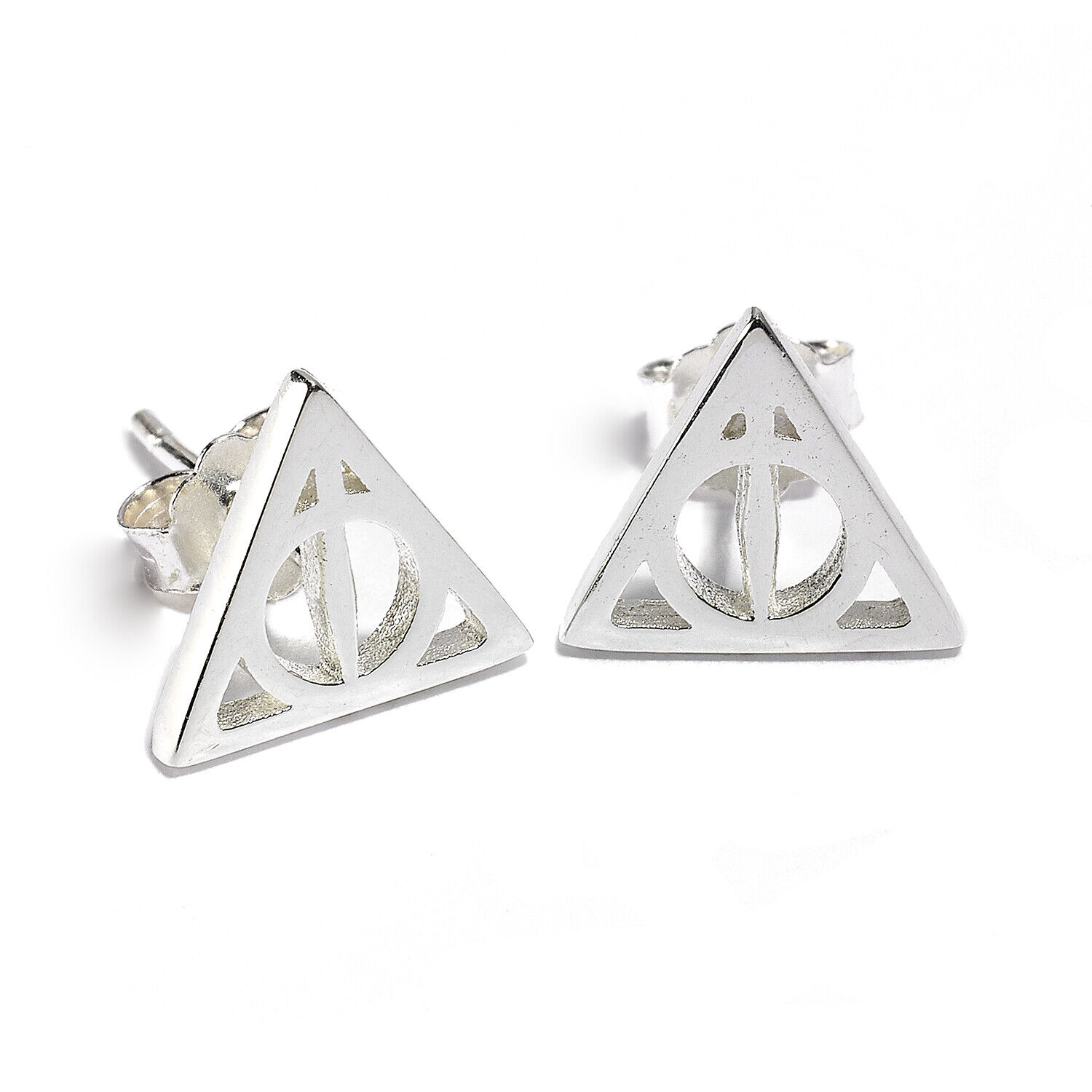 Harry Potter Sterling Silver Deathly Hallows Stud Earrings, By The Carat Shop