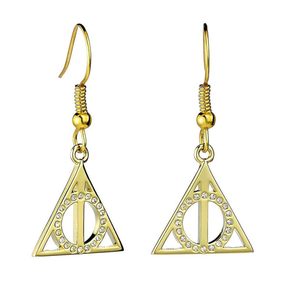 Harry Potter Gold Plated Sterling Silver Deathly Hallows Drop Earrings with Crystals