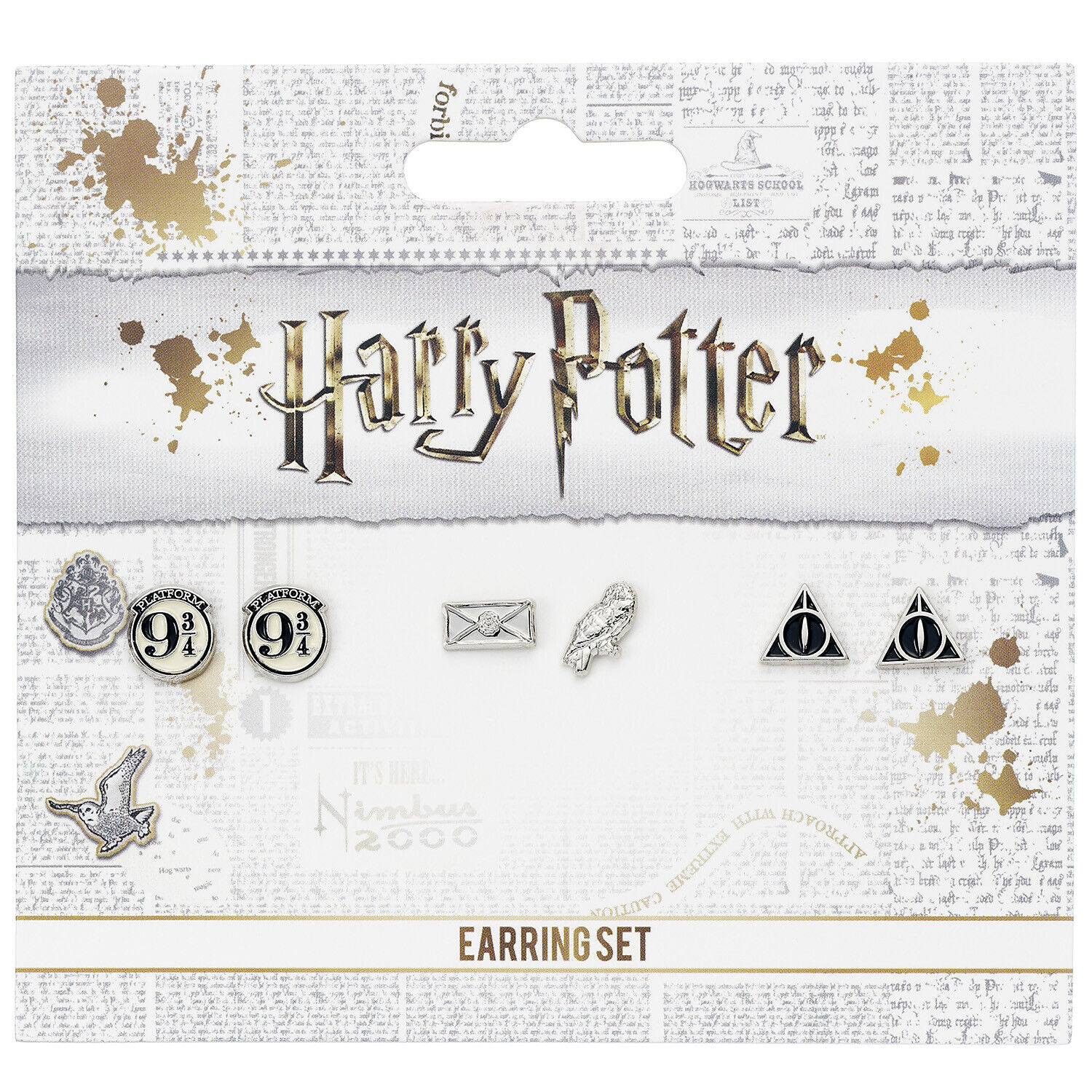 Harry Potter Platform 9 3/4, Hedwig, Letter, and Deathly Hallows Stud Earrings Set