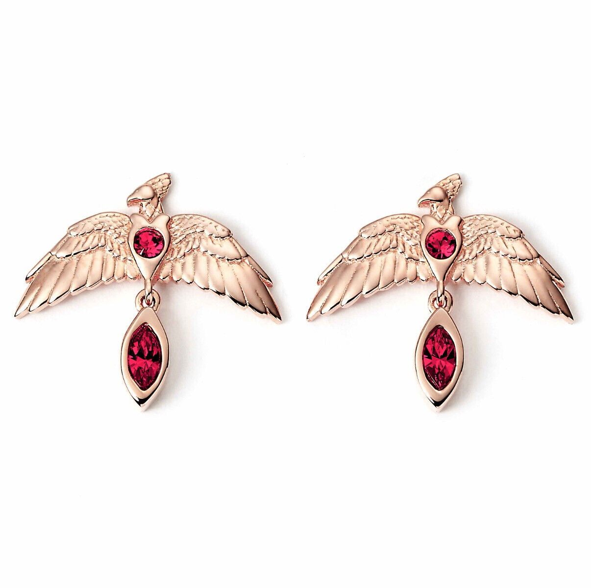 Harry Potter Sterling Silver Rose Gold Plated Fawkes Earrings with Crystals