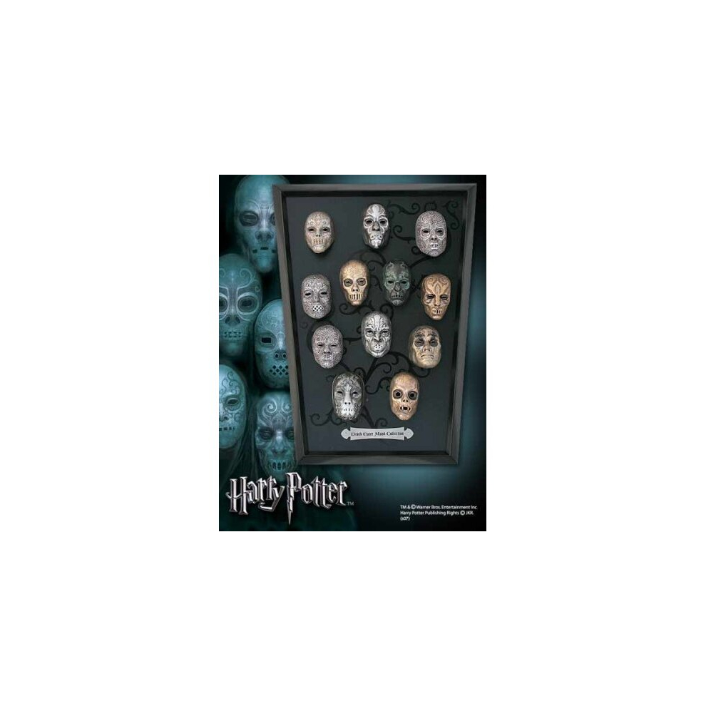 The Noble Collection Harry Potter Death Eater Mini Mask Collection - 16.5in (42cm) Wood Display and Miniature Replicas - Officially Licensed Film Set
