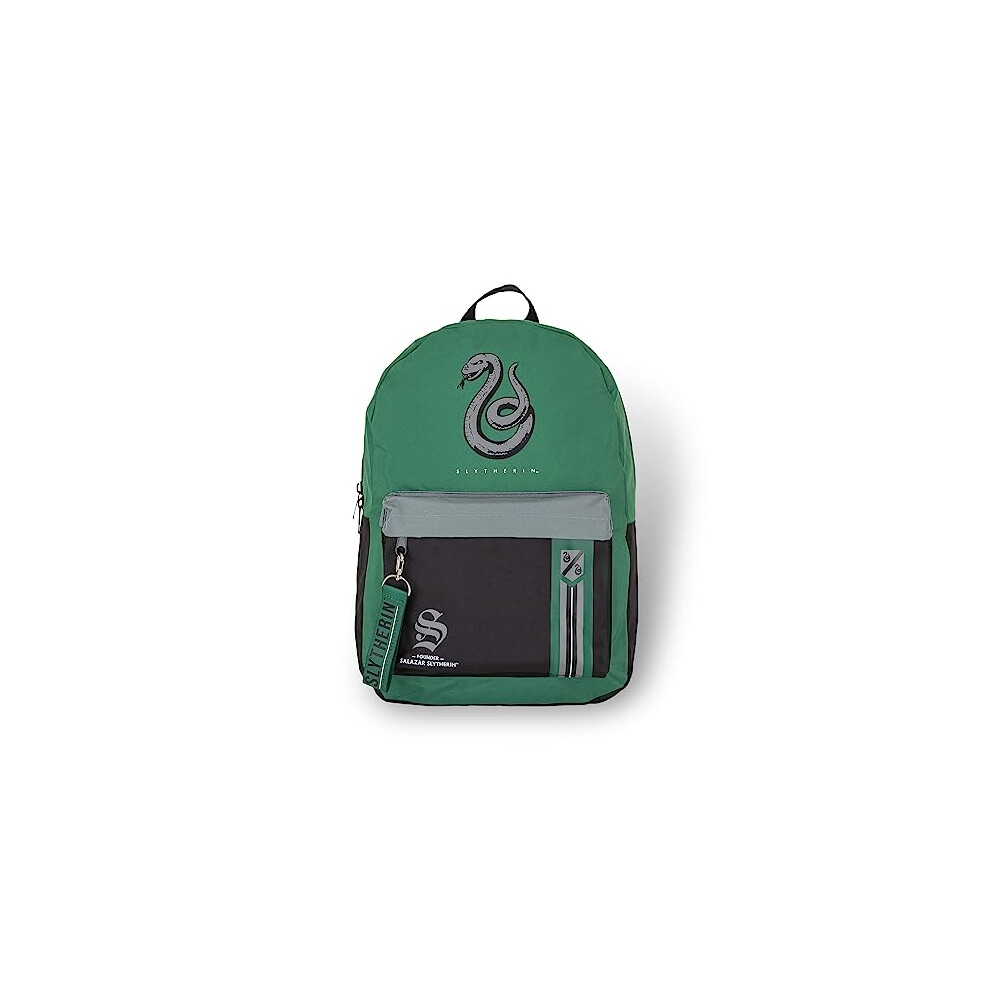 Bioworld Harry Potter Slytherin Mixblock Backpack with Webbing Puller, fits A4 with internal padded laptop/tablet pouch