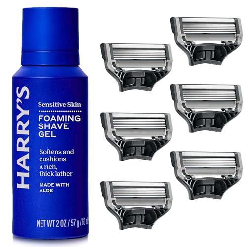 Harry's Original Razor Blades Refill and Foaming Shave Gel, (6) Refillls with Precision Trimmer, 5 Anti-Friction Shaving Blades, 60ml Foaming Shave Gel, Compatible with 'Harry's Original'