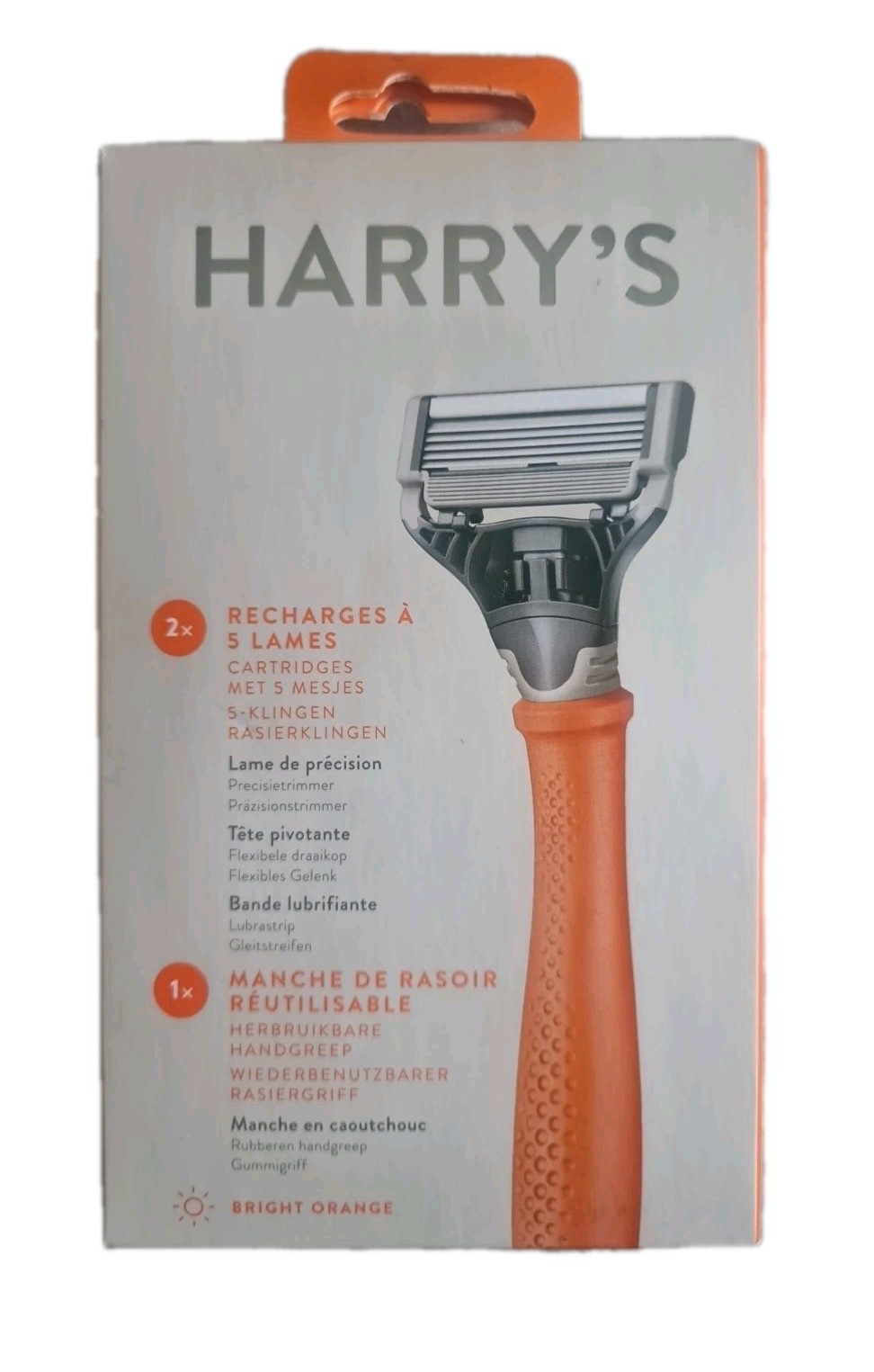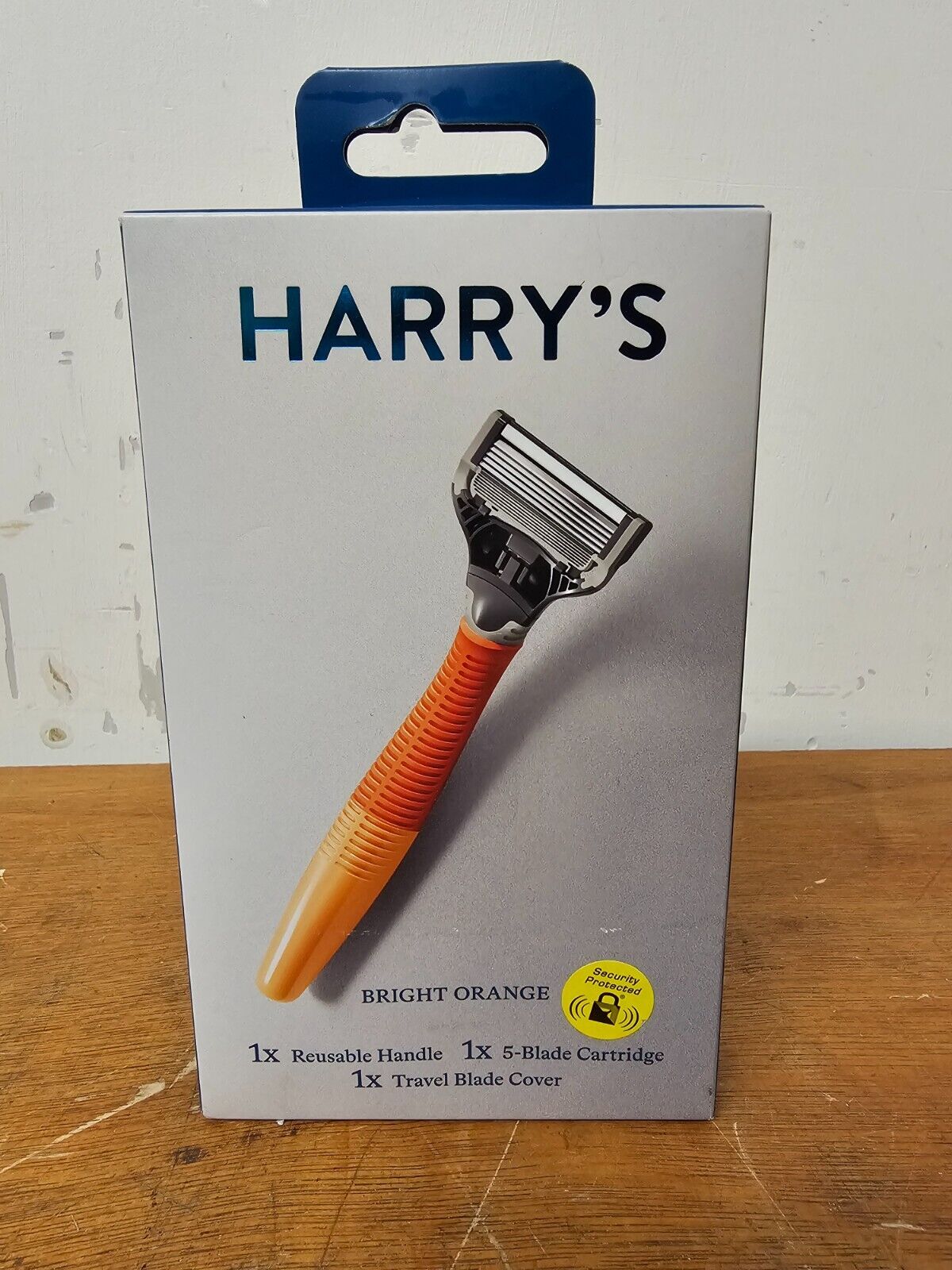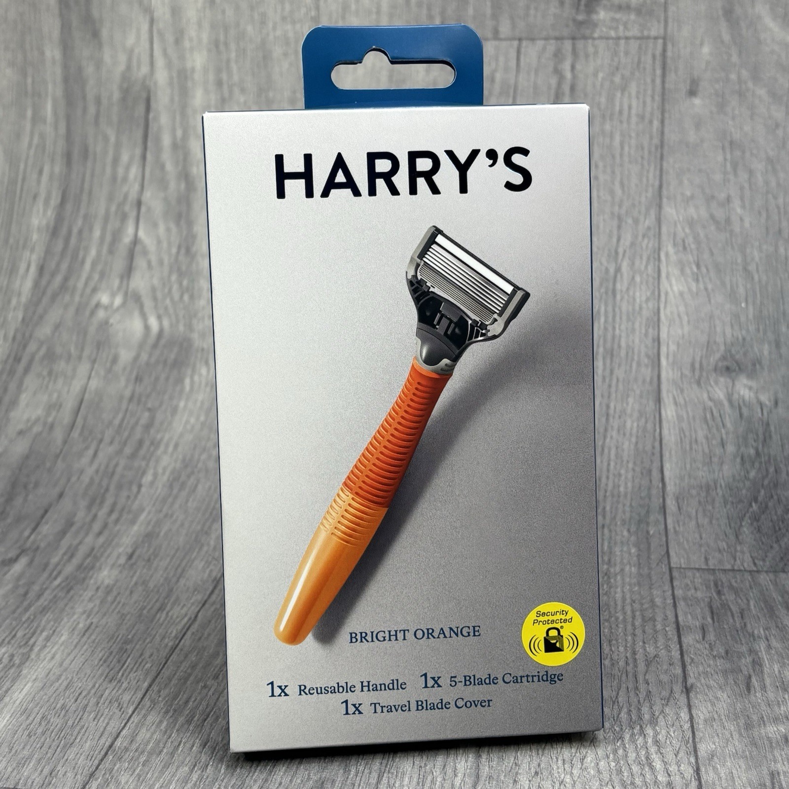 Harry's Razor Bright Orange Reusable Handle Blade Cartridges Travel Cover New