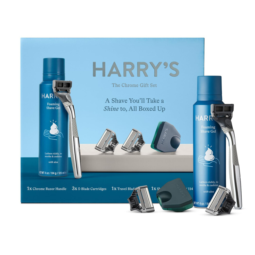 Harrys Mens Chrome Gift Set with 3 Razor Blades + Shave Gel