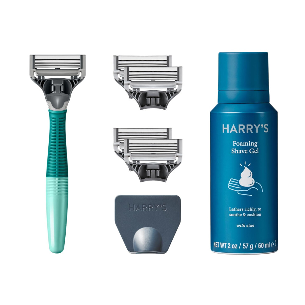 Harry's Razors for Men - Men's Razor Set with Tropical Green Handle, 5 Razor Blade Refills, Travel Blade Cover, 60ml Shave Gel