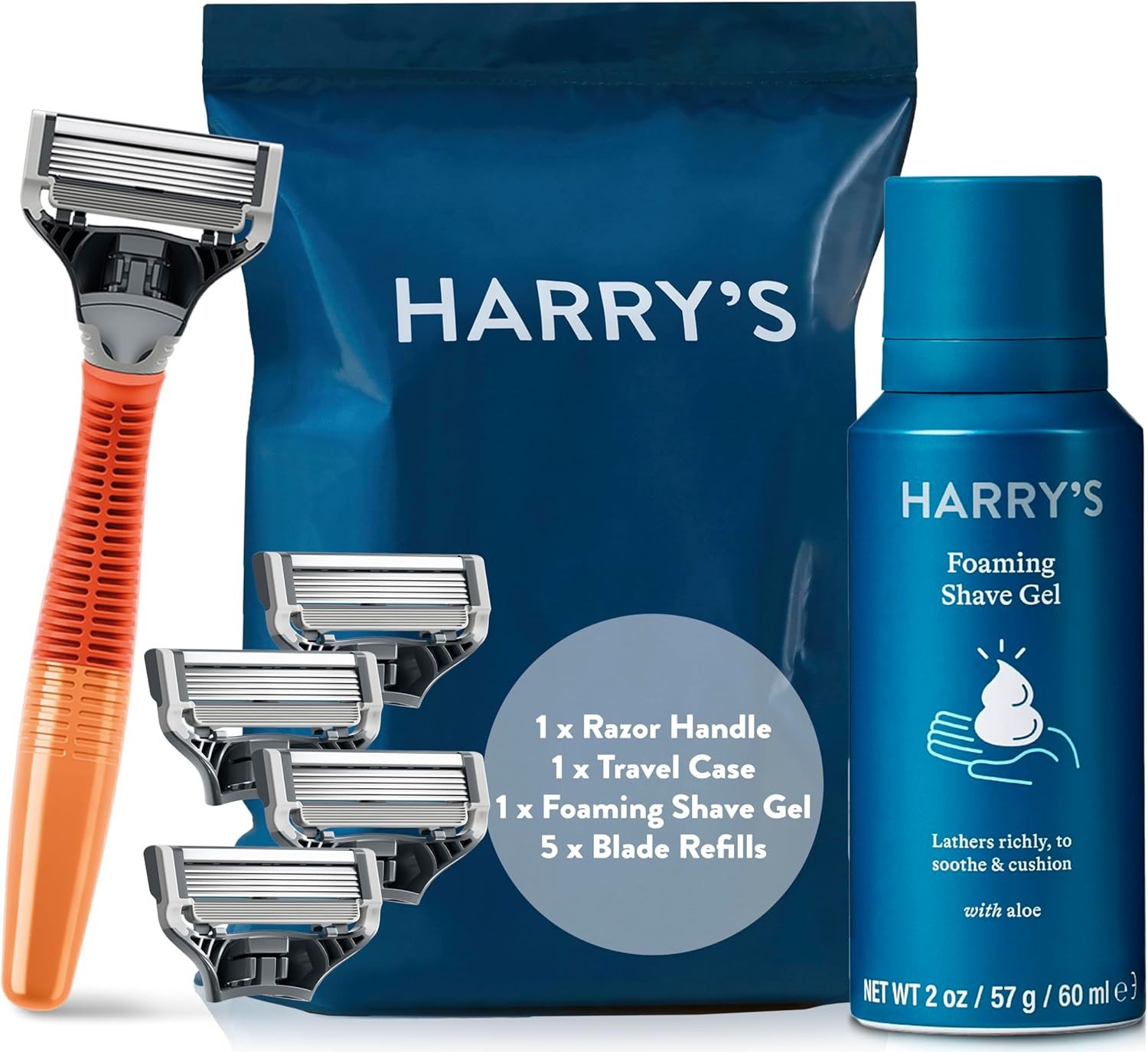 Harry'S Harry's Razors for Men - Men's Razor Set with Bright Orange Handle, 5 Blade Refills, Travel Cover, 60ml Shave Gel