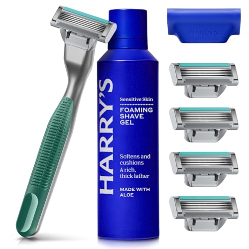 Harry'S Razors for Men - Men's Razor with Chrome Handle + 3 Blade Refills Travel Cover 120ml Shave Gel, Harry's Head use 5