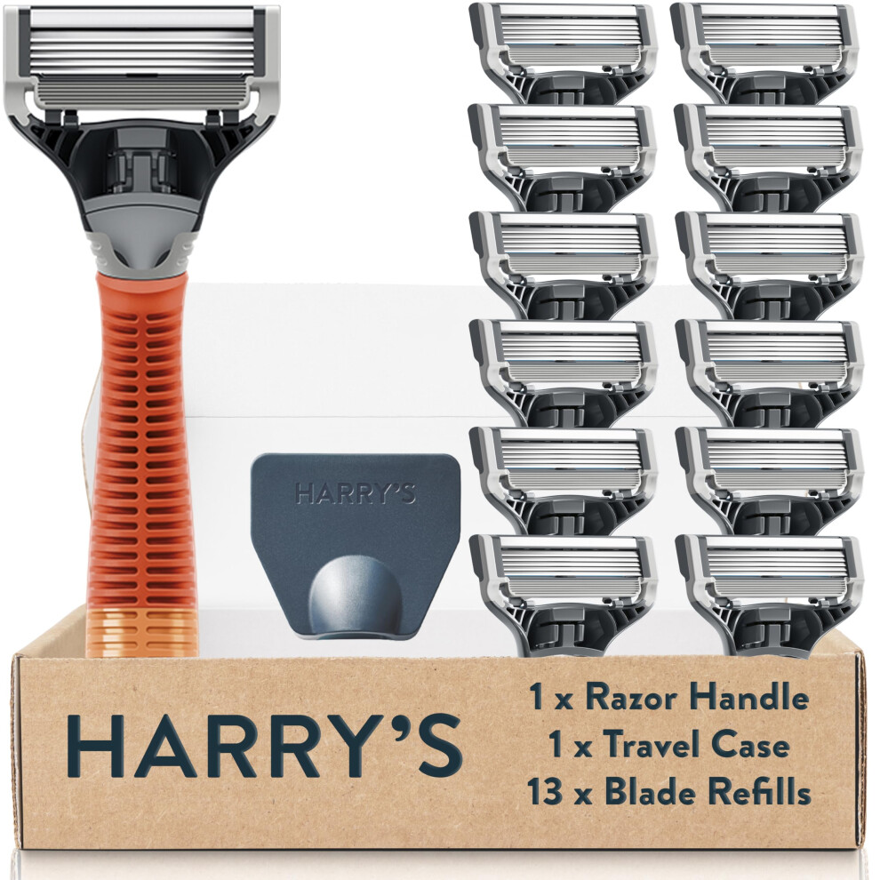 Harry's Shaving Kit for Men - Razor Handle 15 Razor Blade Refills and Travel Blade Cover - Orange