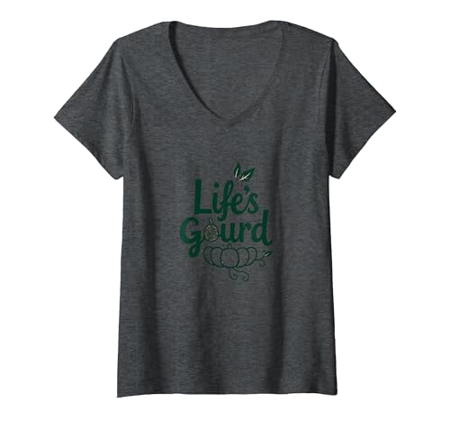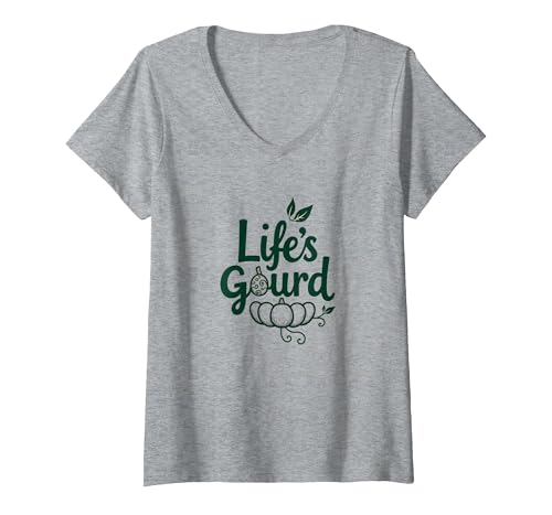 Life's Gourd Pumpkin Harvest Fall Humor Thanksgiving Fun V-Neck T-Shirt, Women, Heather Grey, M