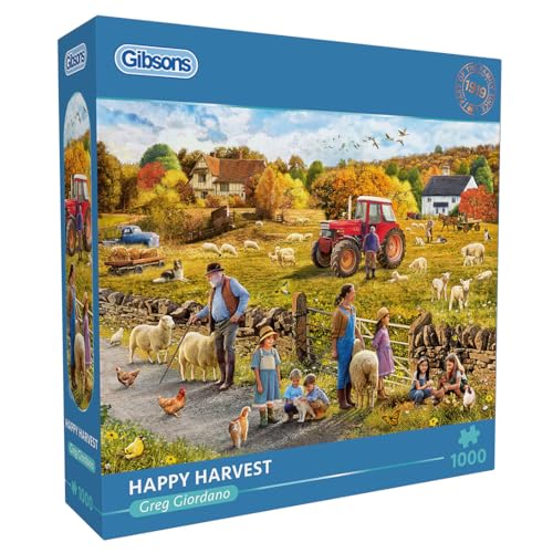 Gibsons Happy Harvest 1000 Piece Jigsaw Puzzle for Adults Nostalgic Traditional Countryside Farm Life & Animals Sustainable Puzzle on Premium 100% Recycled Board Thoughtful Gift