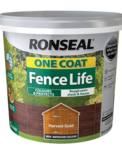 Ronseal 5 Litres Harvest Gold One Coat Fence Life Quick Dry Garden Shed Paint