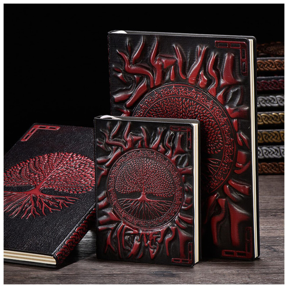 A5 Wine Harvest Tree of Life Notebook Handcrafted Leather Journal (Wine Red, A5)