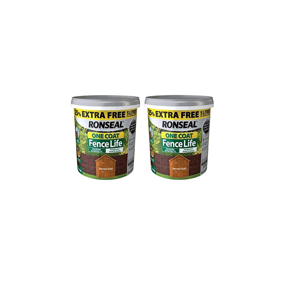 Ronseal 5L One Coat Fence Life Fence Paint Bundle Deal 2 for 49.99-2 x 5L tubs = 10L - Harvest Gold
