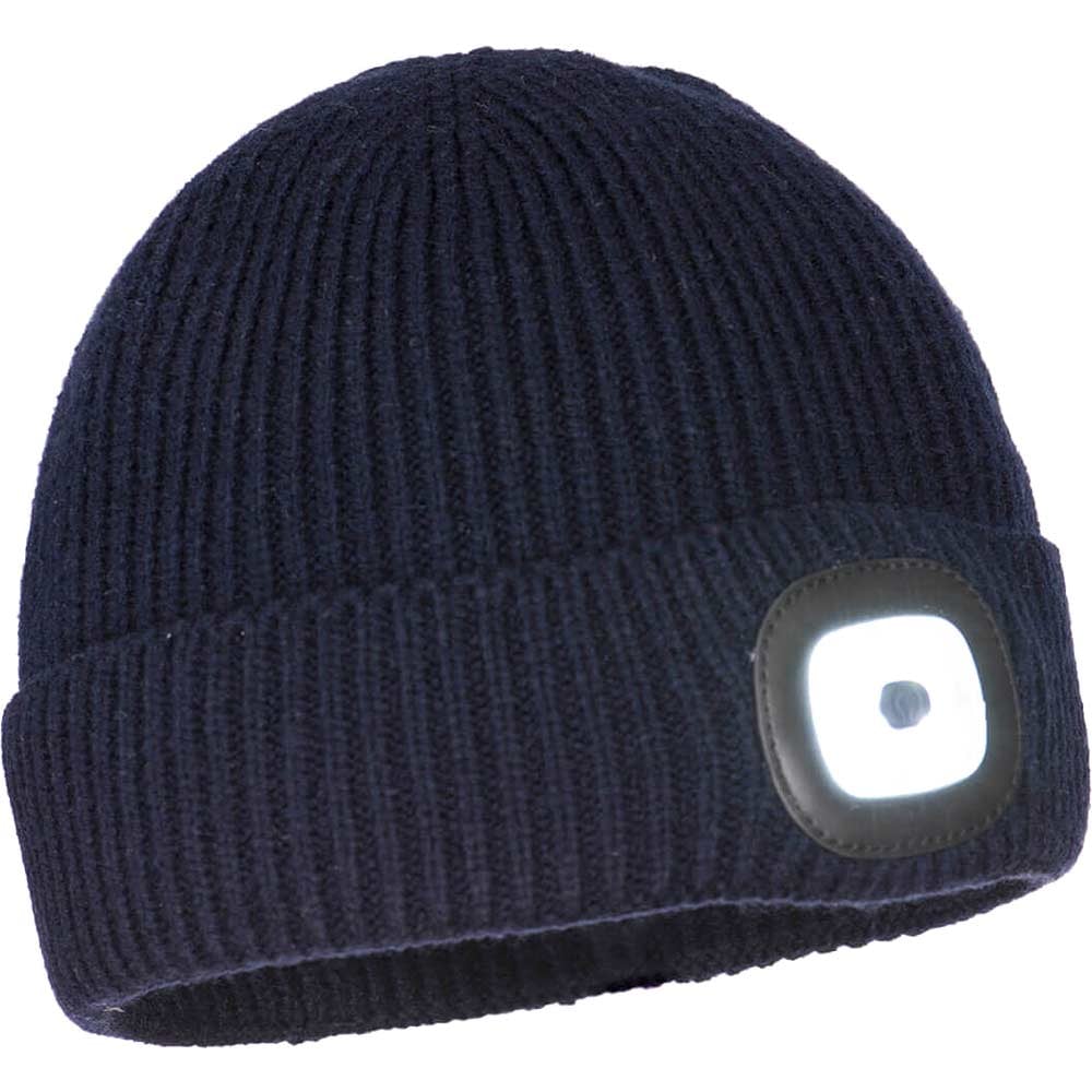 Portwest Workmans Rechargeable LED Headlight Beanie Hat Navy One Size