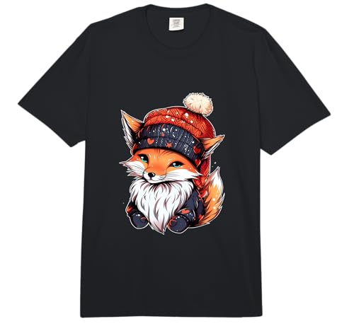 Fox Beanie Hat Knitted Winter Knitted Hat Fox Lovers Comfort Colors Adult Heavyweight T-Shirt