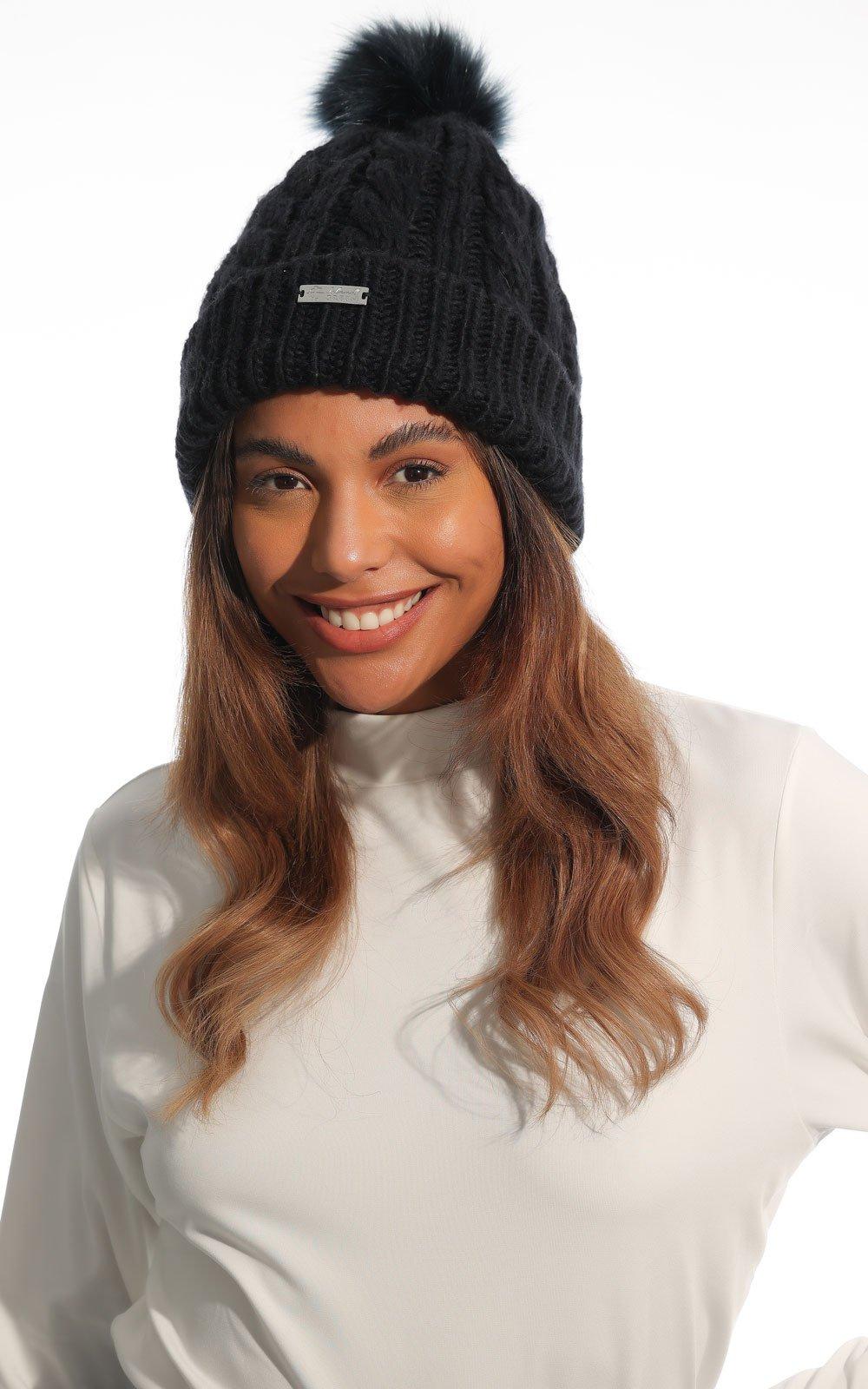 Faux Fur Pom Pom Cable Knit Beanie Hat