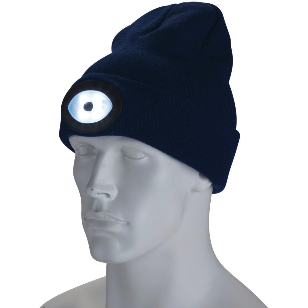 Portwest Beanie Hat and USB Rechargeable LED Head Light Navy One Size