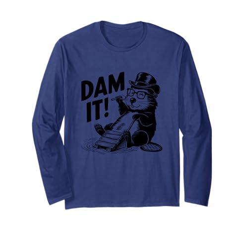 Dam It Funny Beaver Top Hat Glasses Humor Long Sleeve T-Shirt