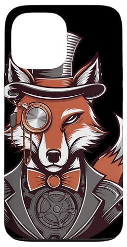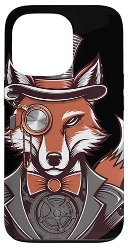 Steampunk Fox Monocle Top Hat Charm Case for iPhone 13 Pro