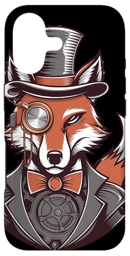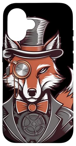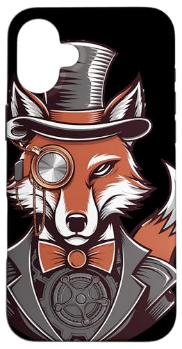 Steampunk Fox Monocle Top Hat Charm Case for iPhone 16 Plus