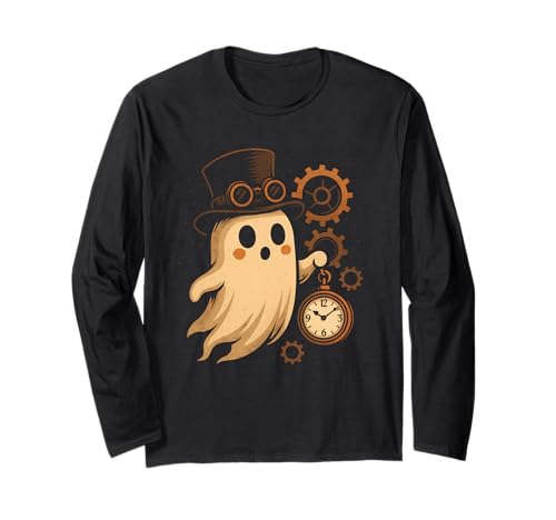 Steampunk Ghost with Top Hat Long Sleeve T-Shirt