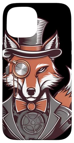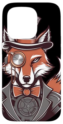 Steampunk Fox Monocle Top Hat Charm Case for iPhone 15 Pro