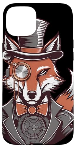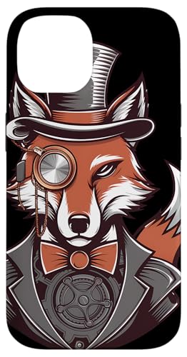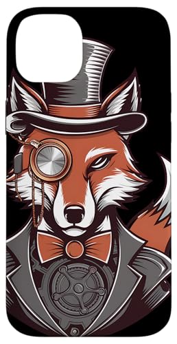 Steampunk Fox Monocle Top Hat Charm Case for iPhone 15 Plus