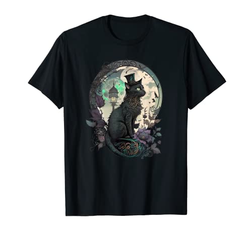 Victorian Steampunk Black Cat Wearing a Top Hat T-Shirt