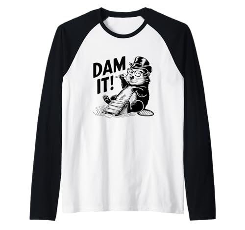 Dam It Funny Beaver Top Hat Glasses Humor Raglan Baseball Tee