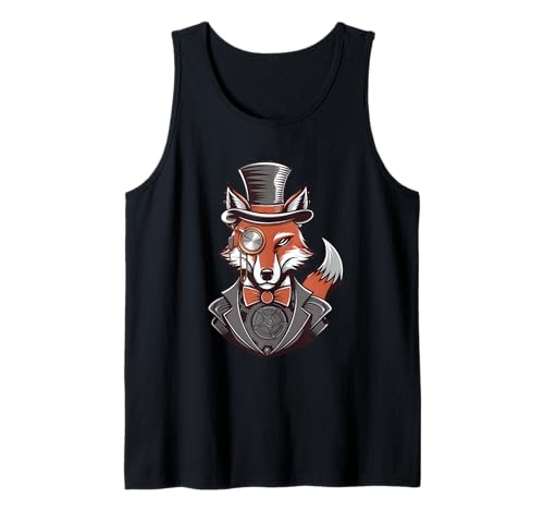 Steampunk Fox Monocle Top Hat Charm Tank Top
