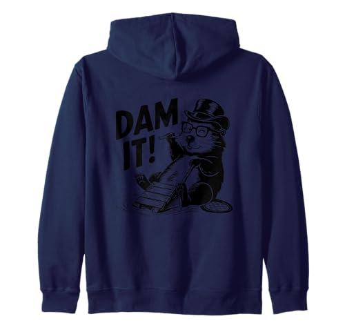 Dam It Funny Beaver Top Hat Glasses Humor Zip Hoodie