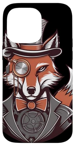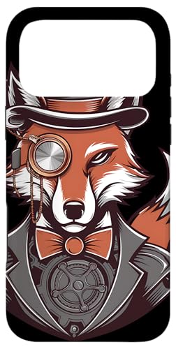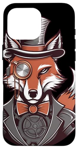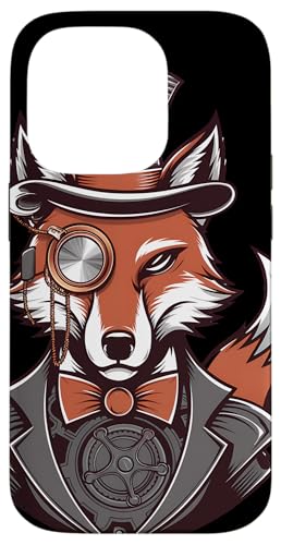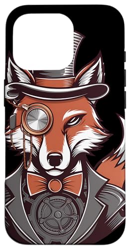 Steampunk Fox Monocle Top Hat Charm Case for iPhone 16 Pro