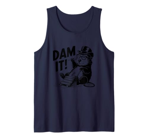 Dam It Funny Beaver Top Hat Glasses Humor Tank Top