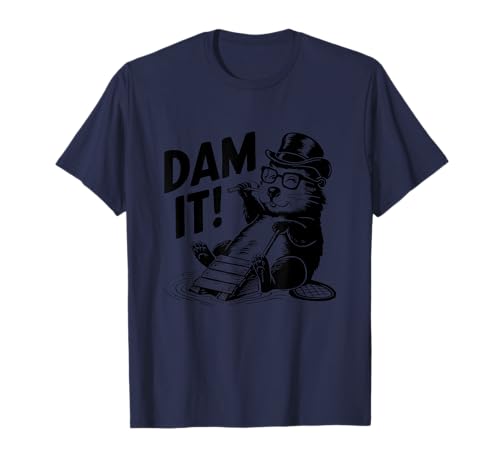 Dam It Funny Beaver Top Hat Glasses Humor T-Shirt