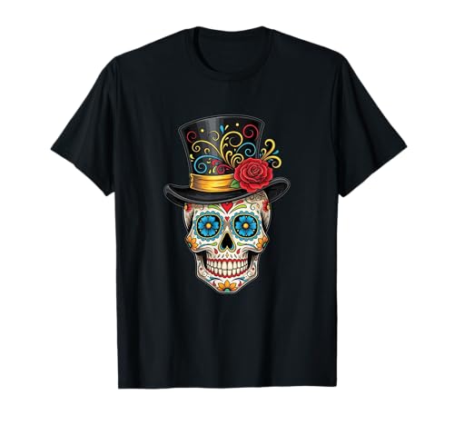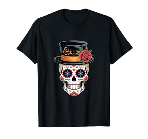Sugar Skull Top Hat Rose Dia de Los Muertos Halloween T-Shirt