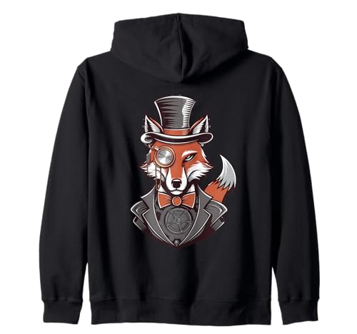 Steampunk Fox Monocle Top Hat Charm Zip Hoodie