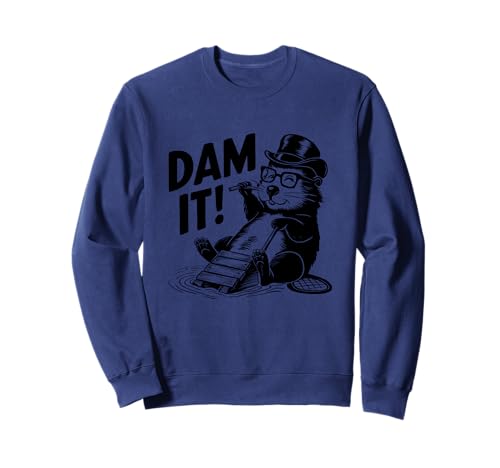 Dam It Funny Beaver Top Hat Glasses Humor Sweatshirt