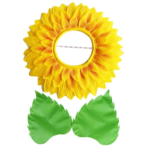 KONTONTY 1 Set Sunflower Headgear, Funny Headpiece Hood Hat with Gloves, Easter Sun Cosplay Headband for Kids Yellow Flower Costume Accessory