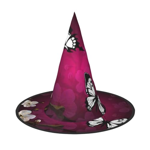 YHLKLWKSZC Halloween Small Witch Hats For Women - Lightweight Foldable Black White Butterfly Print Witches Hats For Boys Girls Halloween Hat Cosplay Party Decorations