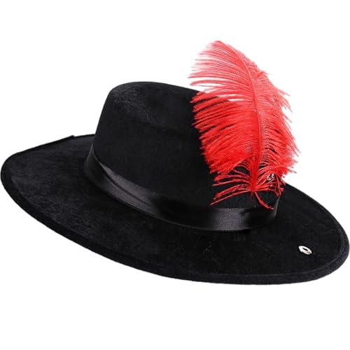 Victorian Hat for Men, Top Hats for Men Women Black Top Hat with Red Feathers Adult Size Felt Costume Accessory for Halloween Party Costume Fancy Dress Accessory
