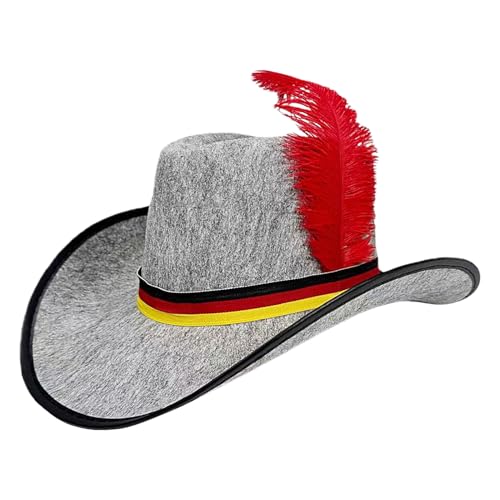 Yonuaret Men's Felt Hat – Festival Hats Women's Western with Black Red Yellow Design and Adjustable Strap Oktoberfest Headwear for Photo Bar Party Stage Outdoor