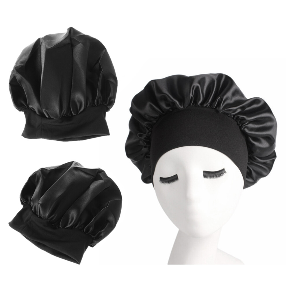 2Pcs Wide Side Elastic Hair Loss Sleeping Hats For Women Girls Black