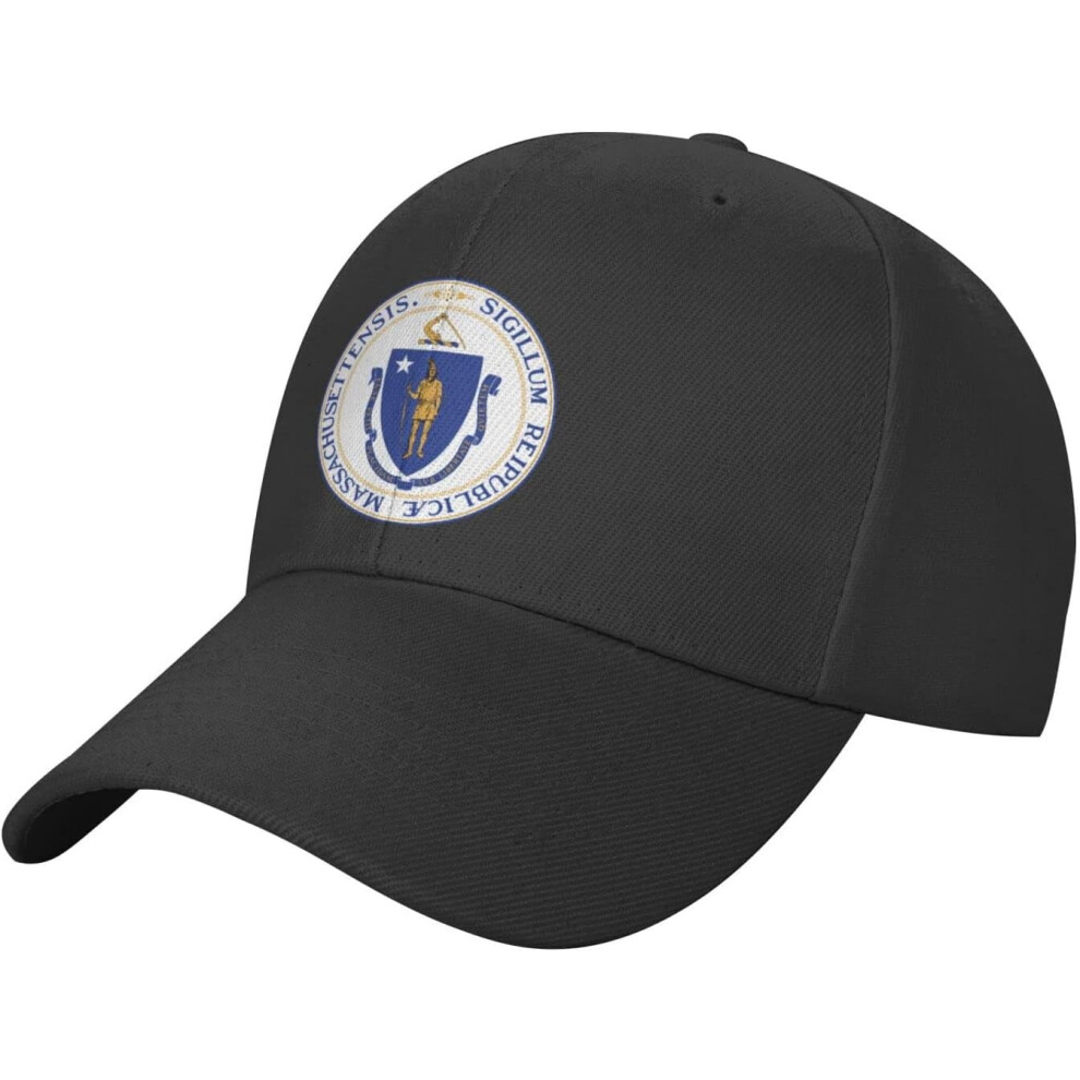 State Seal of Massachusetts Plain Baseball Caps Adjustable Washed Twill Low Profile Dad Hats for Men Women Black