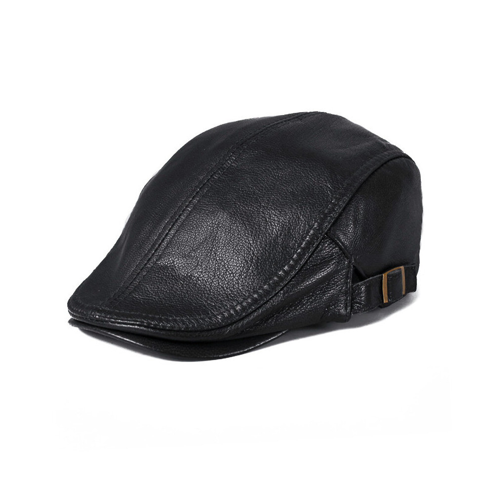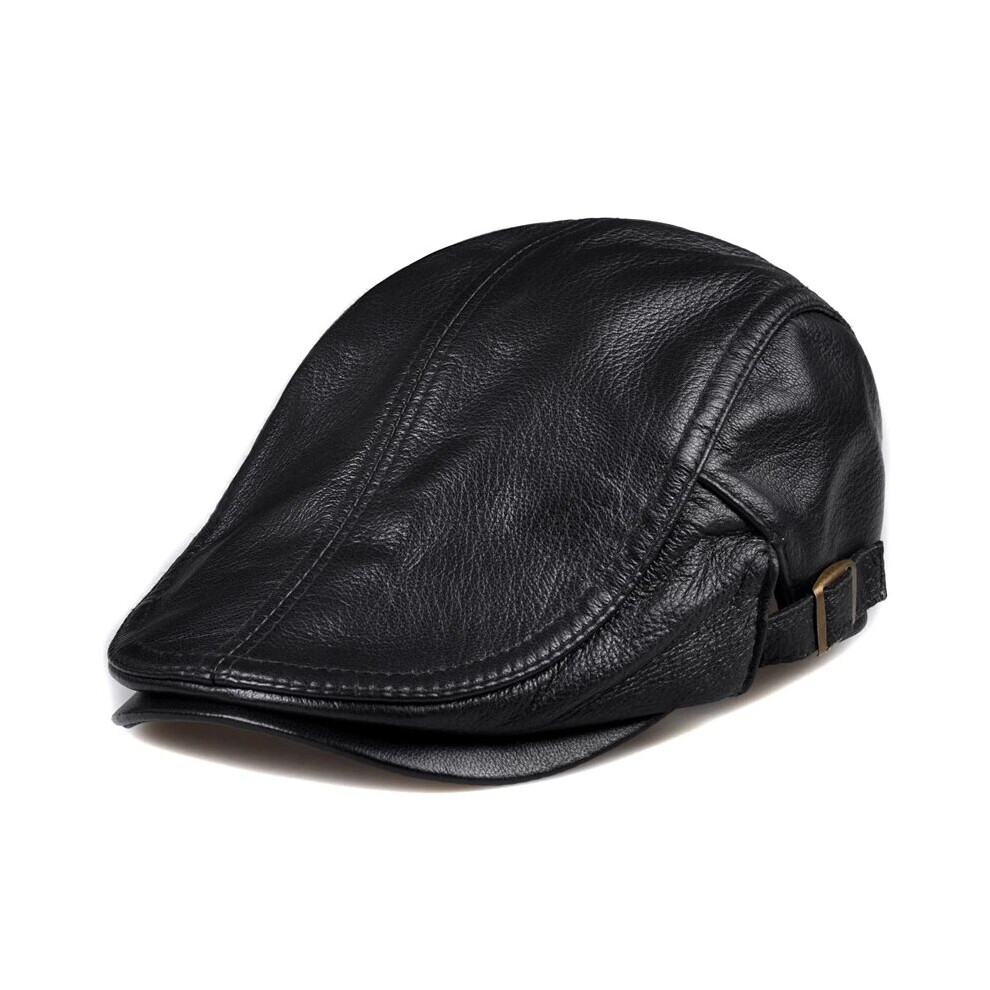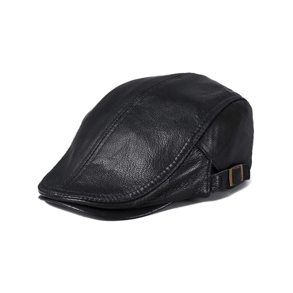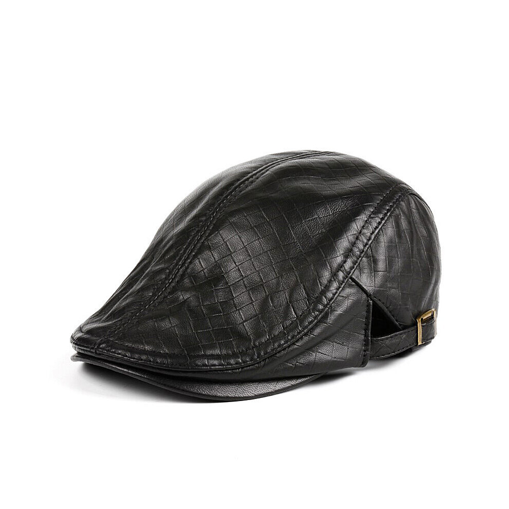 Men Leather Duckbill Boina Thin Berets Hats For Men/Women Leisure Black/Brown 55-60cm Fitted Cabbie Bonnet