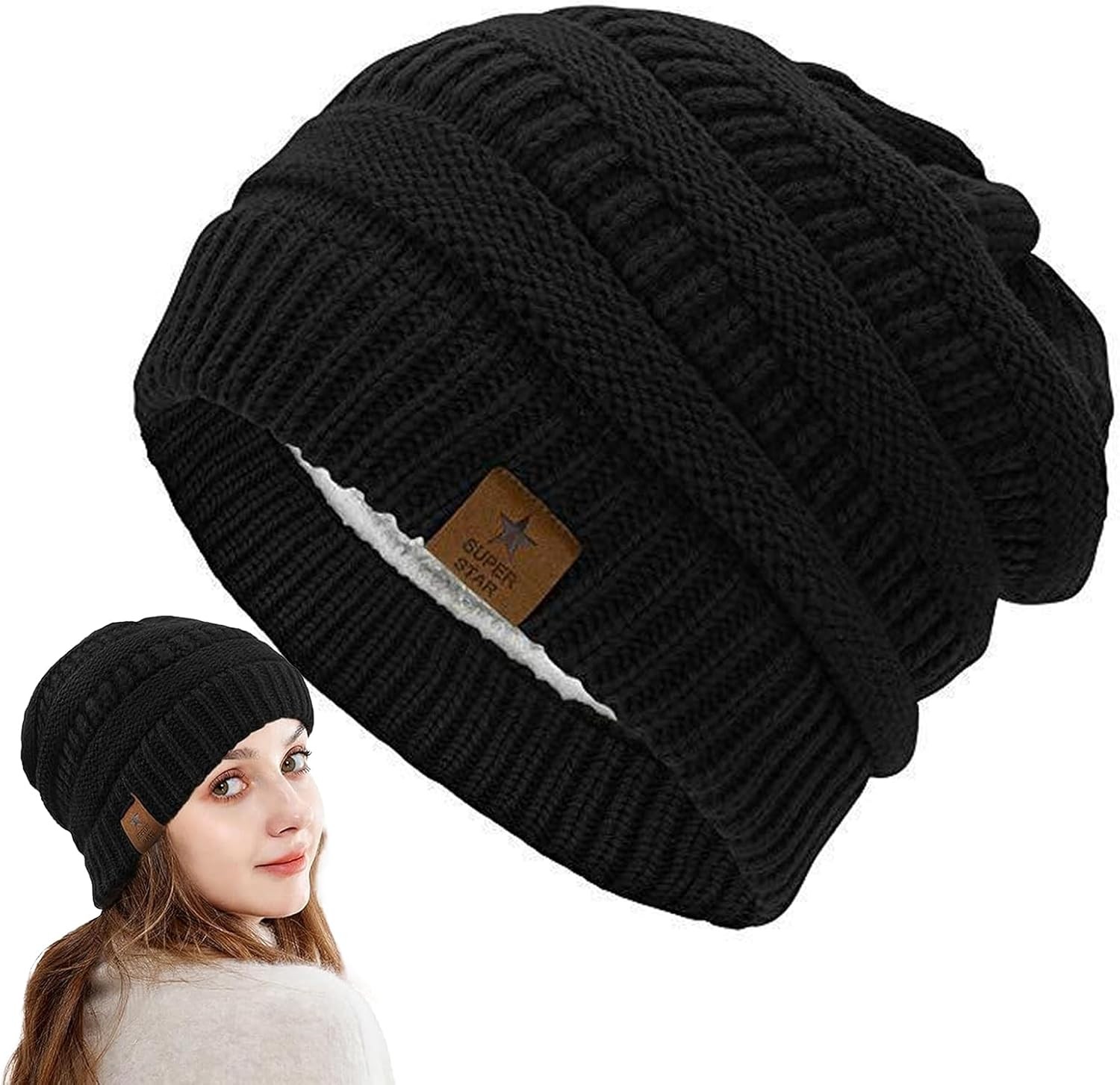 DASJKDI Winter Knit Cap Unisex Ski Hat Beanie Warm Skateboards Loose Caps Hats for Women Cold Weather(Black)