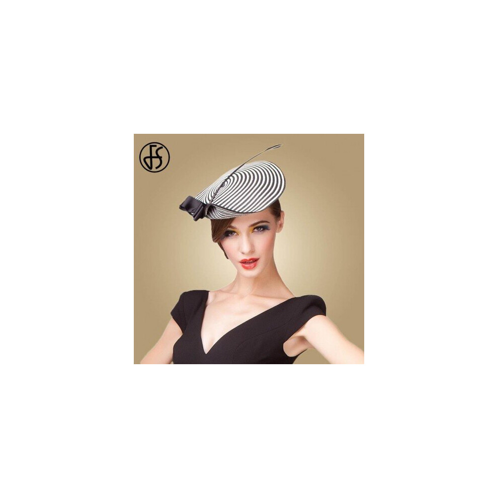 FS Fascinator Wedding Hats For Women Elegant Black White Feather Striped Cupid Pillbox Hat Vintage Cocktail Lady Church Fedoras