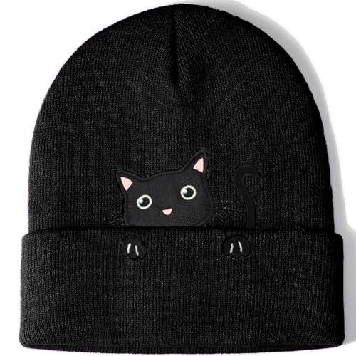 Womens Cat Beanie Cute Cat Lover Gifts Animal Knitted Hats for Women Girls (Black)