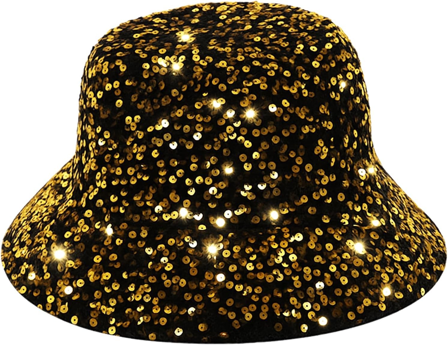 Sequin Bucket Hat, Glitter Disco Hat, Shiny Bling Sun Hats for Women Men Black
